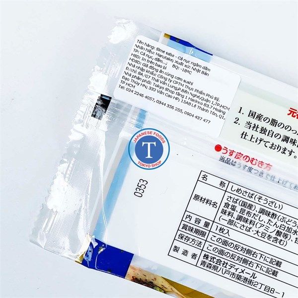 Chế biến: Dùng cho món Sashimi, sushi. Cá Shime Saba chắc thịt, khi ăn có vị thơm bùi và ngọt đậm, hương thơm của giấm gạo nguyên chất, khi nuốt có vị bùi bùi nơi cuối miệng, dư vị kích thích vị giác.
